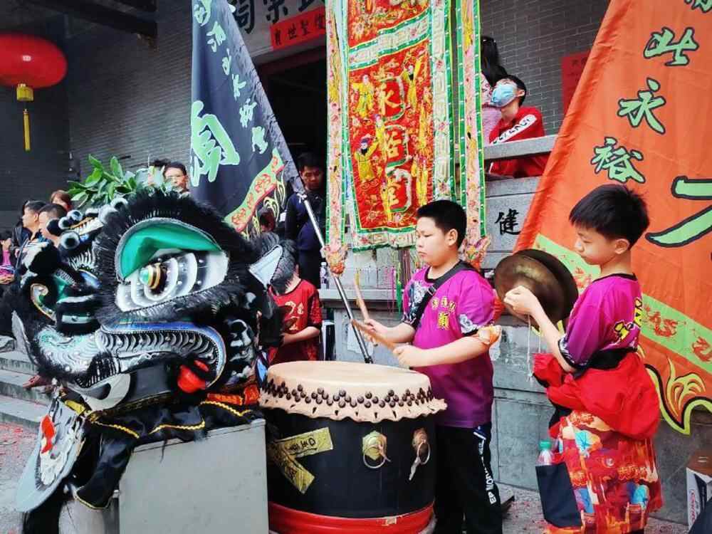 “今年已经是我学习打鼓的第五年,也是我第一次担任醒狮队的鼓手,很累也很充实。”醒狮队的小队员颜子俊今年11岁,打起鼓来十分得心应手,他的父亲是狮队的老鼓手,他从小便看着父亲打鼓,十分向往,跟随学习后,如今也开始独当一面,他为此感到自豪,在表演后许多阿公阿婆叔叔阿姨的夸赞更让他坚定信心。“我已经想好了,我将好好把打鼓技艺传承下去。”颜子俊说。