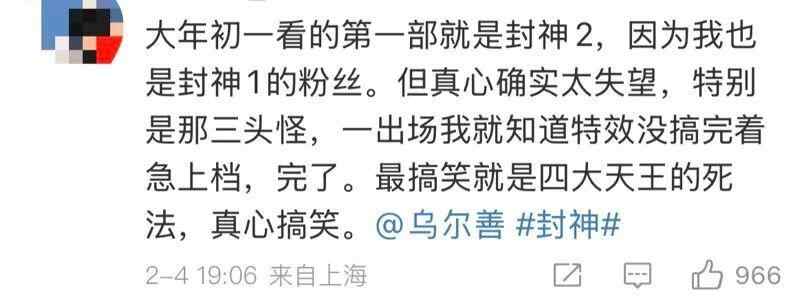 2月4日,据报道,《封神2》太原路演现场观众情绪失控,导演乌尔善被观众贴脸质问:“为什么封神的口碑两极分化,你想过没有?我们作为路人一直在给你说好话,你有没有想过自己去解决这些问题?”