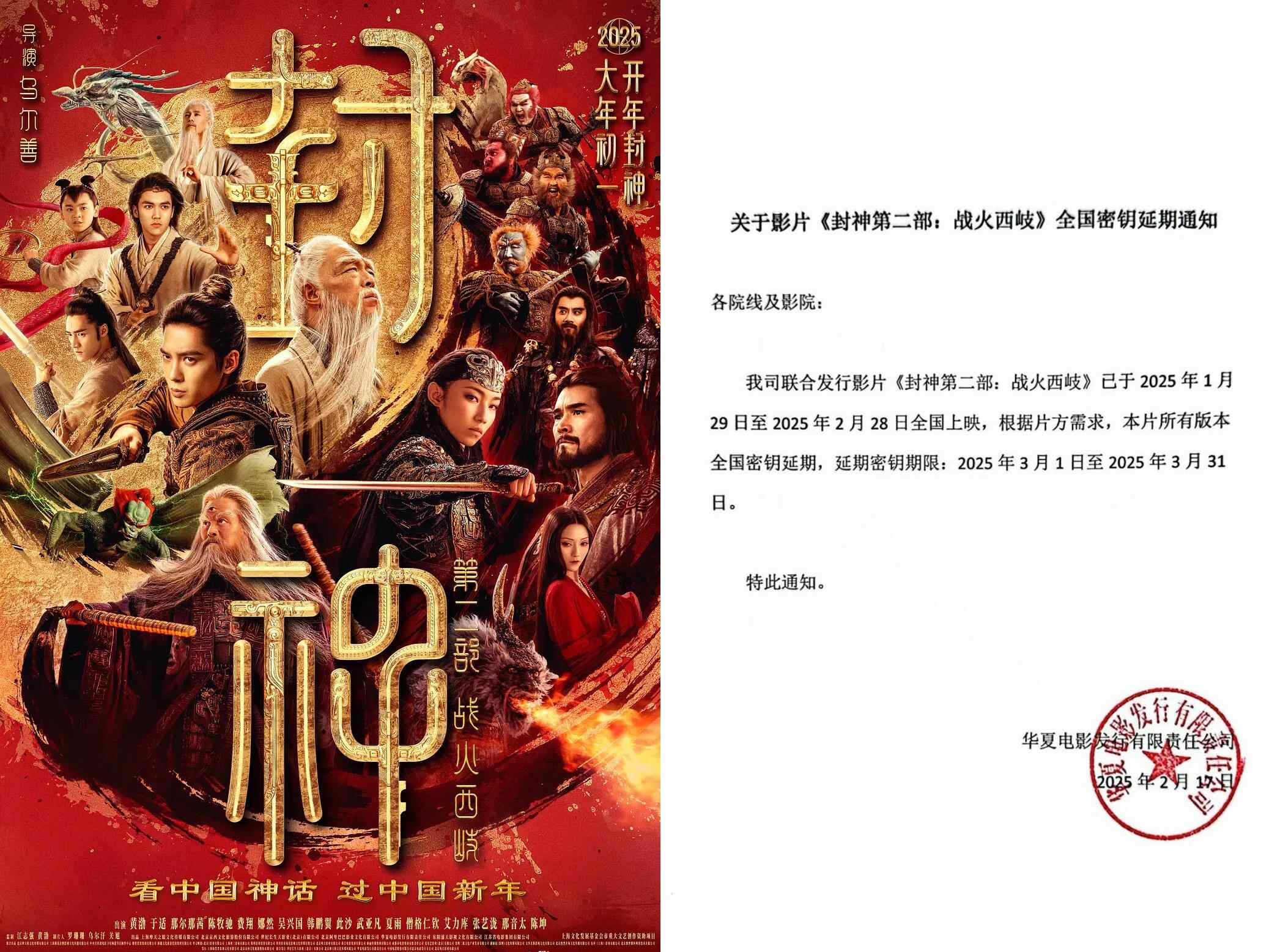 电影《封神第二部:战火西岐》密钥延期至3月31日。截至今日17时许,该片票房达11.63亿。