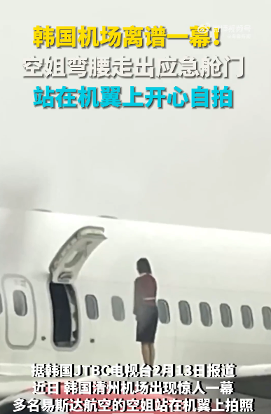 2月18日,据海客新闻消息,韩国JTBC电视台2月13日报道,近日,韩国清州机场出现惊人一幕,韩国廉价航空易斯达航空的多名空姐站在机翼上拍照,引发争议。