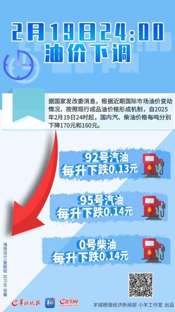 2月19日,记者从国家发改委官网获悉,根据近期国际市场油价变化情况,按照现行成品油价格形成机制,自2025年2月19日24时起,国内汽、柴油价格(标准品,下同)每吨分别降低170元和160元。折升价92#汽油、95#汽油、0#柴油分别下跌0.13元、0.14元、0.14元,这是2025年以来的首次下调。