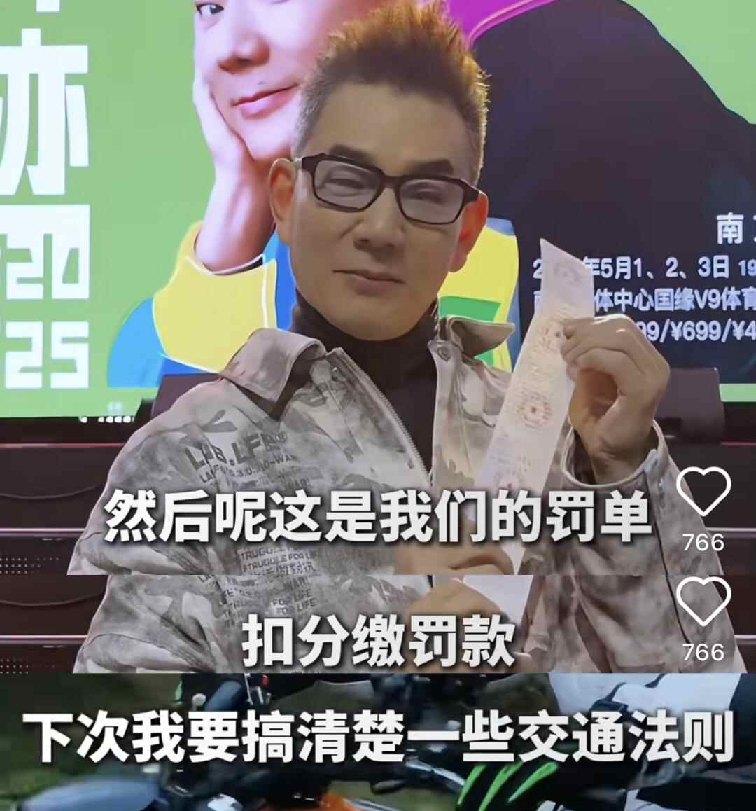 2月19日,知名歌手任贤齐在个人社交平台发视频,自曝在南京骑摩托车被开罚单。