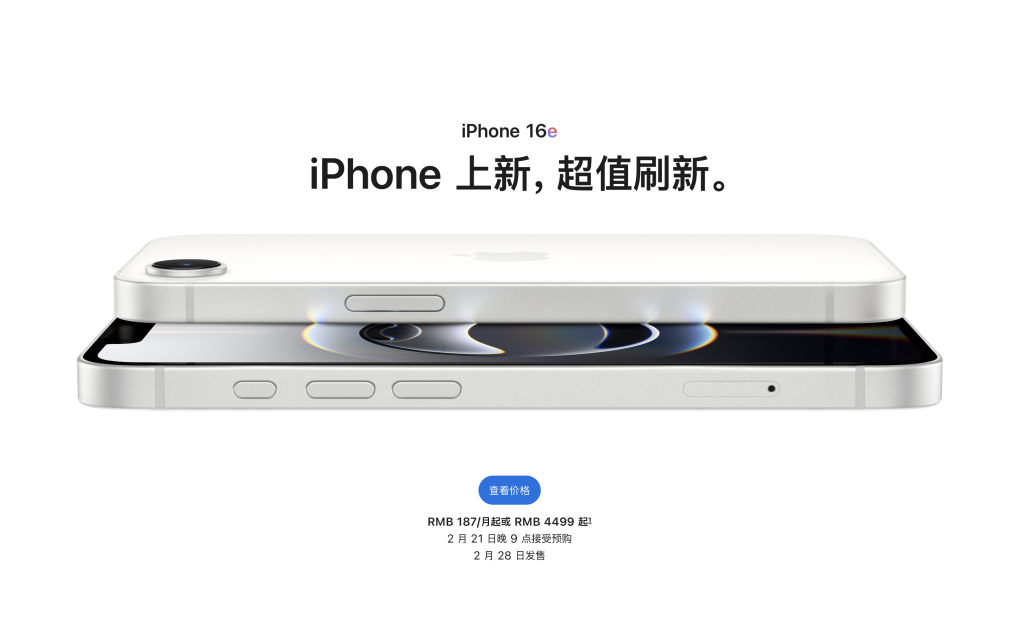 当地时间2月19日,苹果如约发布“家族新成员”——iPhone 16e,售价4499元起,2月21日开放预购,2月28日正式发售。