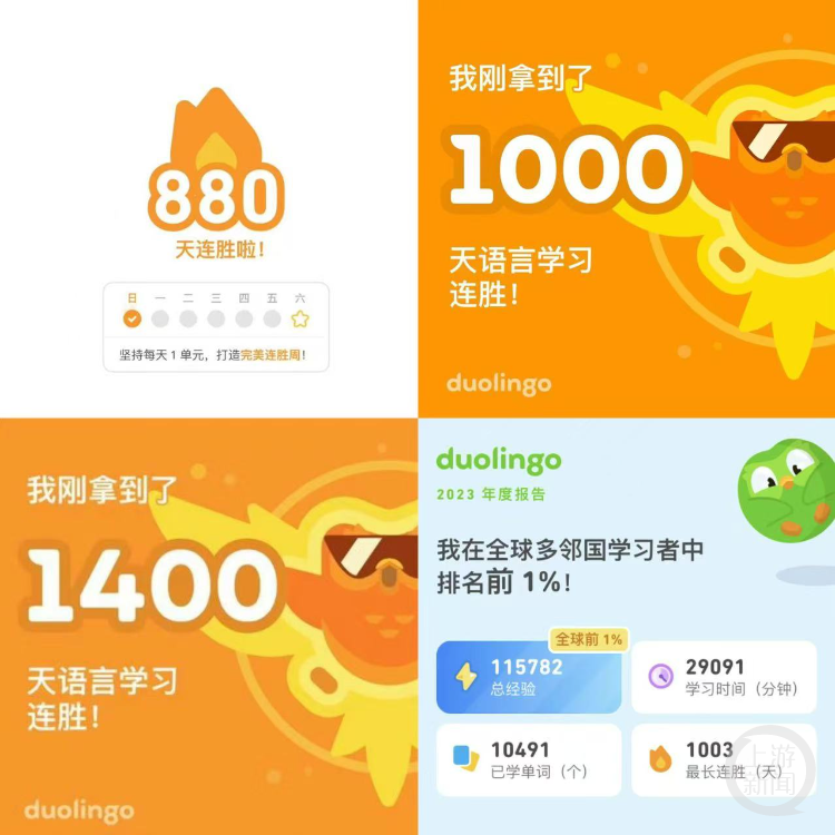 该款APP已上线14年,截至2025年2月,其月活用户超1亿。在这个庞大的基础群体下,老人坚持1440天不间断打卡学习的纪录,超越了99.99%的用户。
