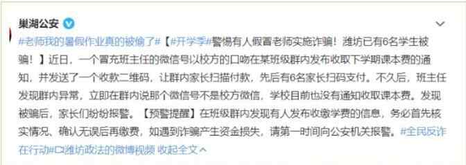 二维码诈骗。在校园中,有不法分子冒充班主任微信在学校群内发送收款二维码,要求学生缴纳费用,给家长们造成经济损失。我们应对群内各种二维码提高警惕,不扫描不明来源的二维码。