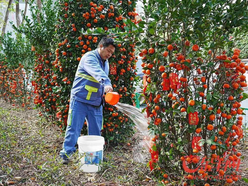 记者在天河区天河南街道广利路桥底看到,环卫工人正忙着为复种的年花年桔浇水。经过精心打理,废弃年桔在此重新焕发生机,为路面增添了绿意。“这片地以前是荒地,现在复种了废弃年桔,过路的街坊们看到后,都觉得赏心悦目。”天河南街广和社区居民刘漾说。