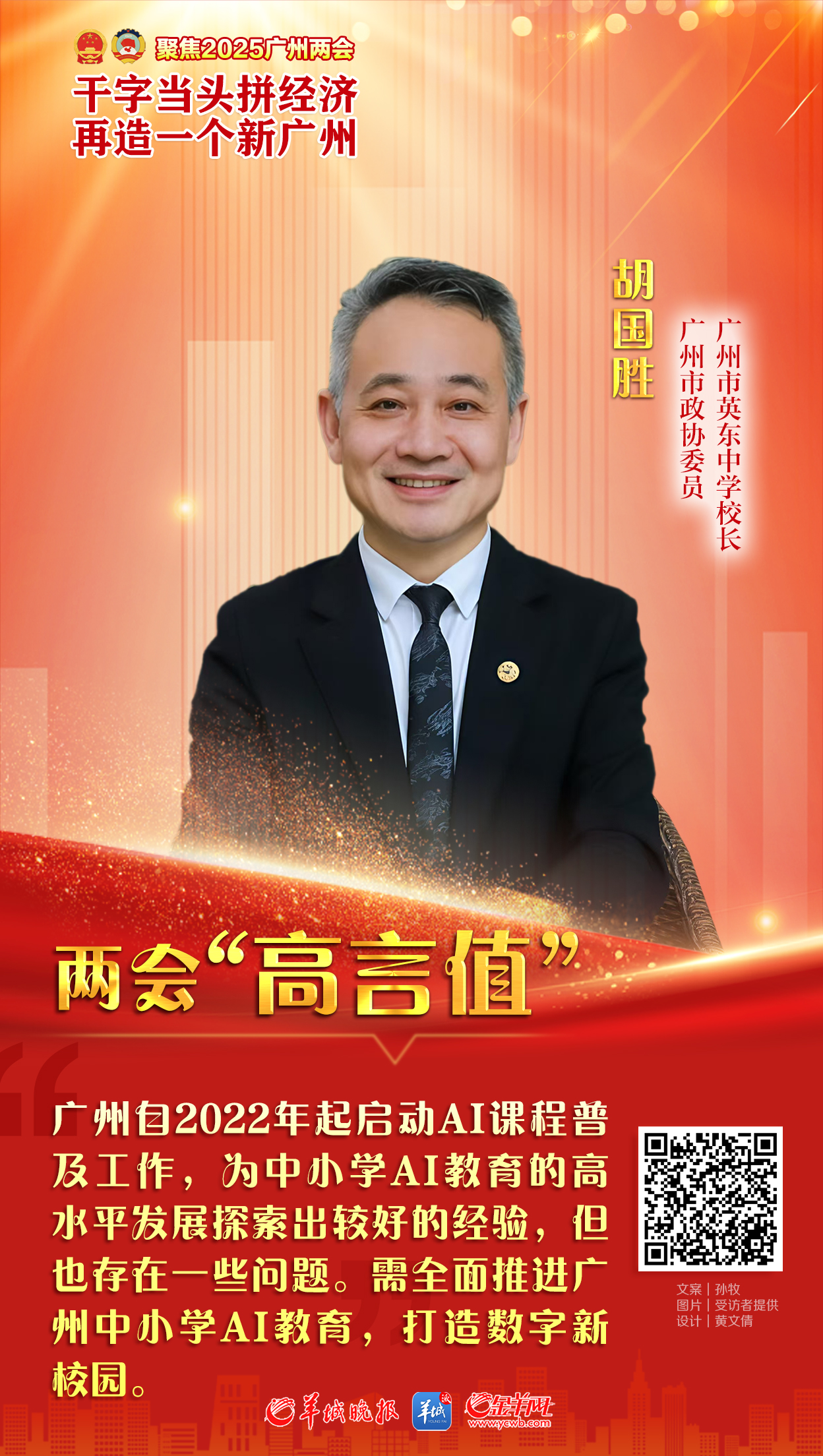 广州步入“两会时间”,“AI+教育”成为本次两会期间代表、委员们的热议的话题之一。广州市政协委员、广州市英东中学校长胡国胜带来名为《关于加快我市全面推进中小学AI教育的建议》的提案,以探索中小学人工智能教育的实施路径。