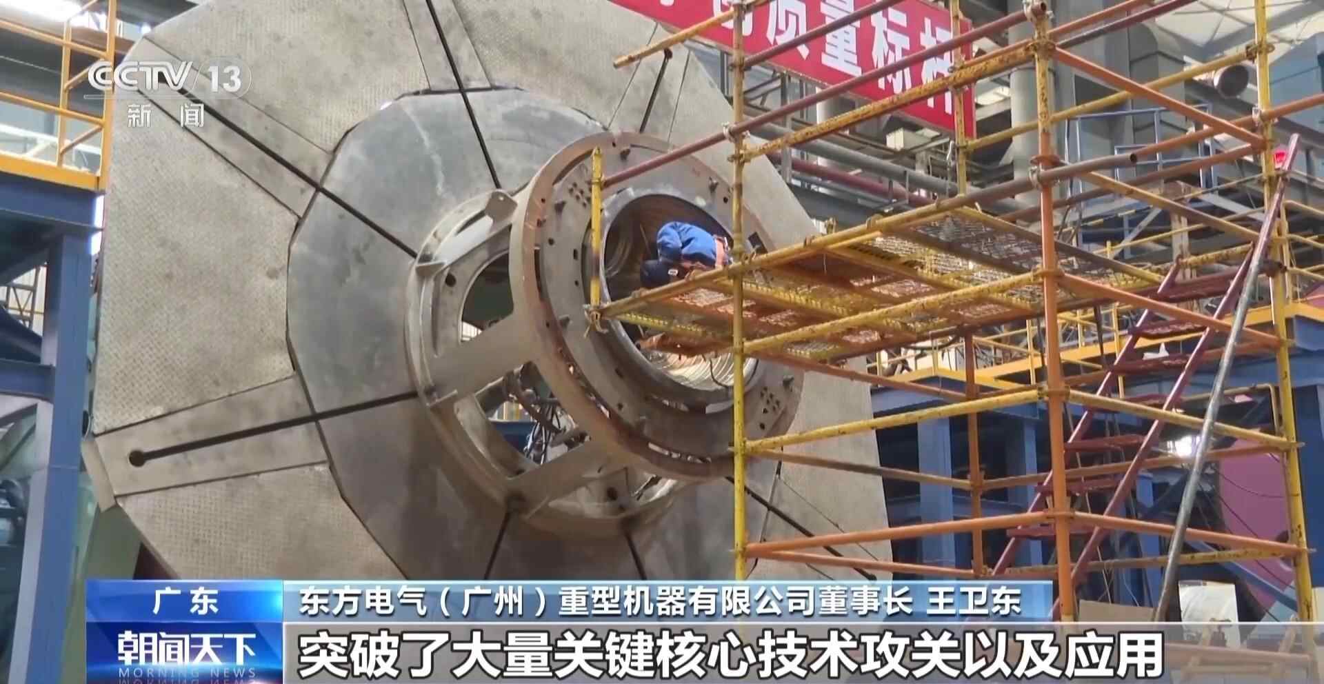 在位于广州南沙的东方重机,核电机组的蒸汽发生器、反应堆压力容器等正在加工,“华龙一号”的许多核心装备都由他们配套生产。