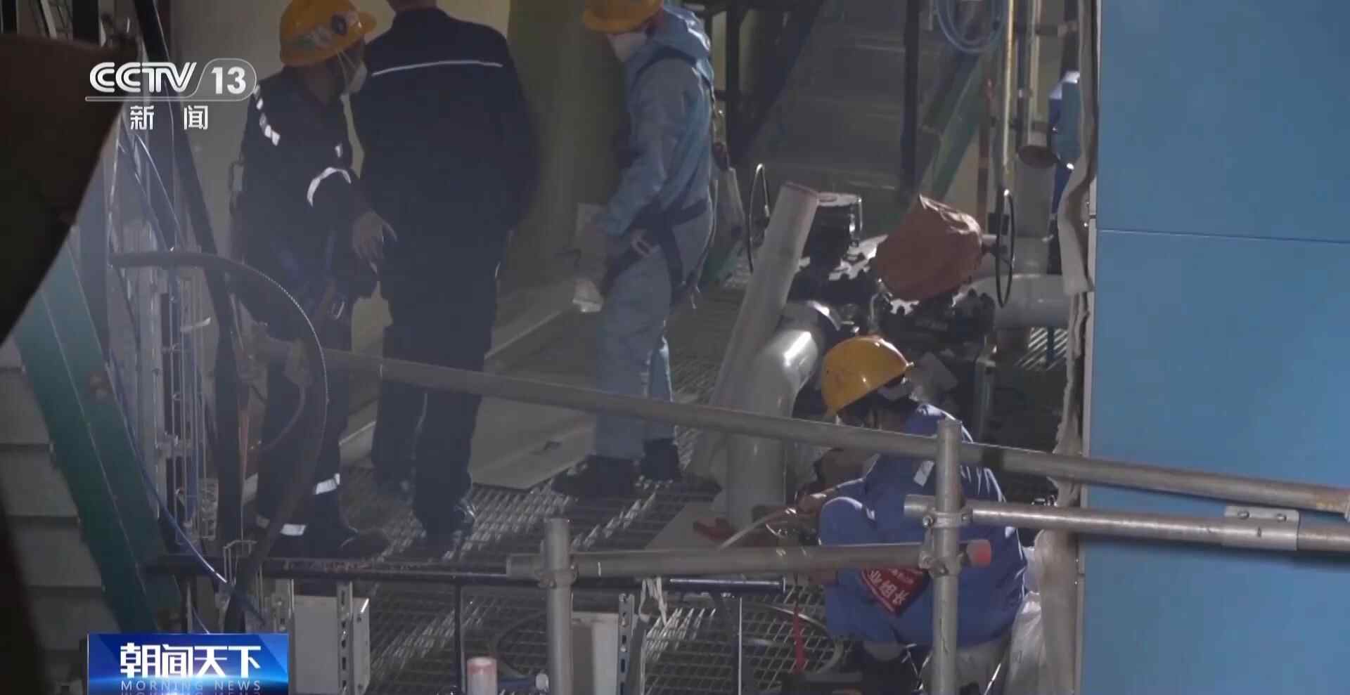 中广核苍南核电有限公司仪控部经理 熊威:现在是建设安装阶段,所以它的口开得比较多,等后续项目到收尾阶段,会把所有的口全封起来,只预留一个出口,再进入的话就全部换连体服了。