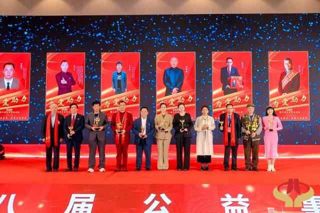 第八届公益事业大典年度盛典颁奖现场,左五为陈焕新