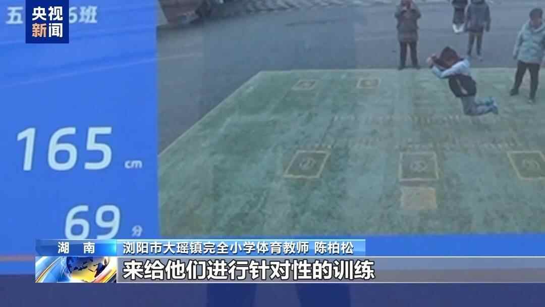 浏阳市大瑶镇完全小学体育教师 陈柏松:立定跳远会有标准动作叫收腿、收腹,以前就是需要关注每一个学生的练习情况,现在可以通过视频回放,来了解每个学生的差异性,给他们进行针对性的训练。