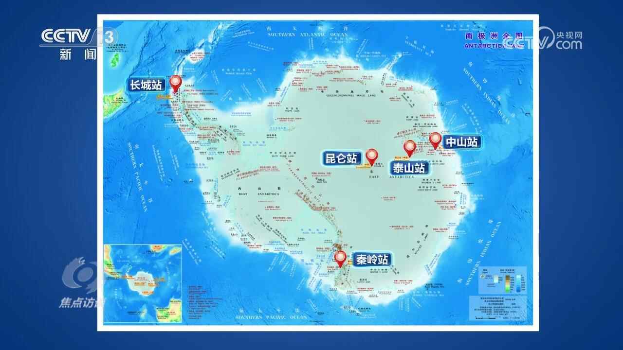 国家海洋局极地考察办公室原总工程师徐世杰:“这个站不仅看数量,而且还要看地区,因为南极1400万平方公里,比我们国家的面积都大。从考察站的分布来讲,可以说占据了南极重要的地理单元,有亚南极的代表长城站地区;有很有代表性的南极丘陵中山站地区;秦岭站是在罗斯海,就是著名的罗斯冰架;还有内陆的泰山站和昆仑站。(我国)南极建站的情况在南极的国家中排名领先,排在第一站队。”