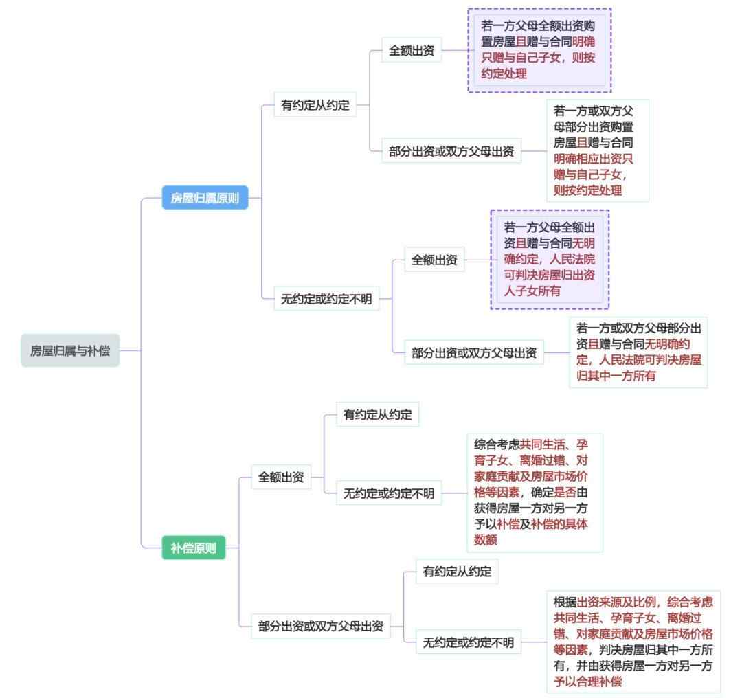 司法解释区分一方父母全额出资和双方父母出资或一方父母部分出资两种情况,分别予以规定。