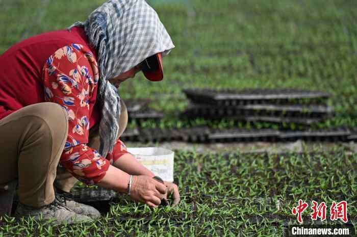 2月18日,新疆焉耆回族自治县农民在大棚育苗。确·胡热 摄