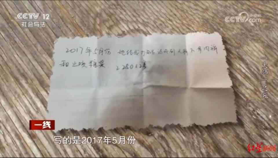 在警方调查期间,周某的妻子想起,周某病重期间曾写下一张纸条,并叮嘱她如果自己出了事就把这张纸条拿出来看。