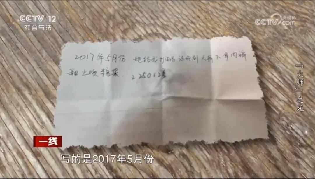 在警方调查期间,周某的妻子想起,周某病重期间曾写下一张纸条,并叮嘱她如果自己出了事就把这张纸条拿出来看。