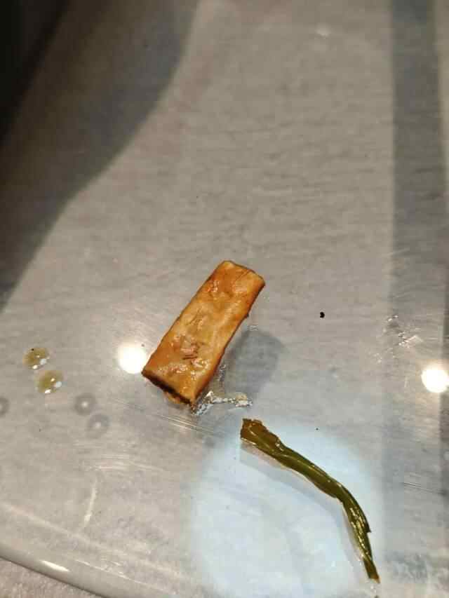 快吃完的时候,赵先生的朋友从菜里吃出根烟头,“夹的时候没发现,是黑色的,朋友吃到嘴里了,烟头上还有牙印”。