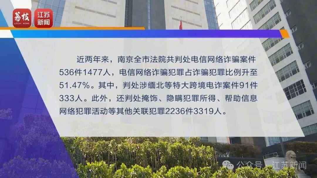 法院严惩电信诈骗集团或团伙的首要分子和骨干成员,对参与时间短、诈骗数额小的从犯以及未成年人、学生等,结合具体案情,在打击犯罪的同时教育感化挽救,帮助其回归社会。两年来,南京全市法院共判处电信网络诈骗案件536件1477人,电信网络诈骗犯罪占诈骗犯罪比例升至51.47%。其中,判处涉缅北等特大跨境电诈案件91件333人。