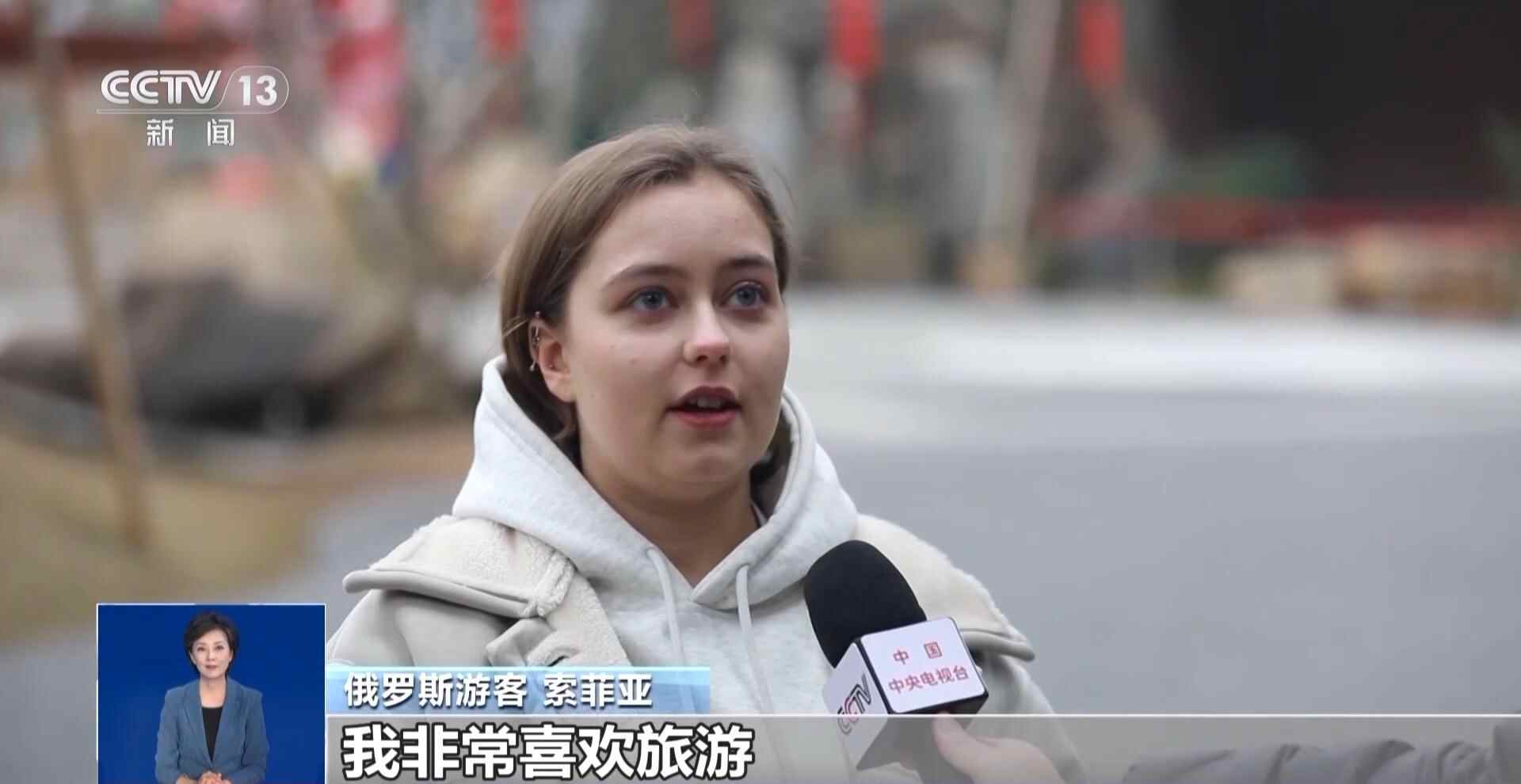 俄罗斯游客 索菲亚:我非常喜欢旅游,因为中国是一个非常大而神奇的国家,围绕着这个国家可以看到不同的东西。旅游是学习一个国家文化和传统的重要组成部分。
