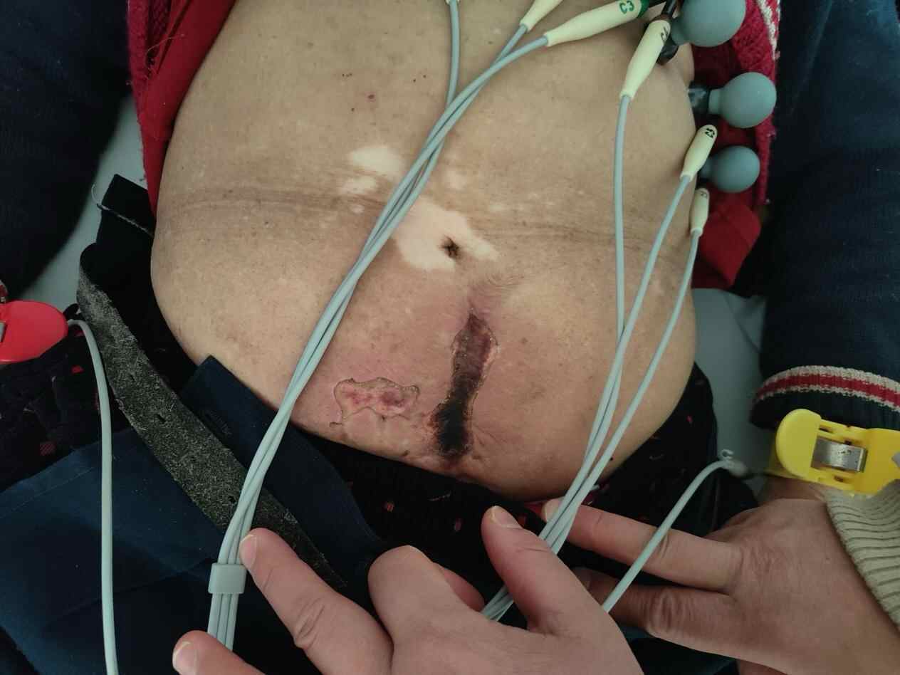 接诊的老年医学科医生仔细检查,发现吴奶奶肚子结痂处按压后有脓性分泌物流出,大片皮肤烫伤发红,考虑是二度皮肤烫伤并感染。