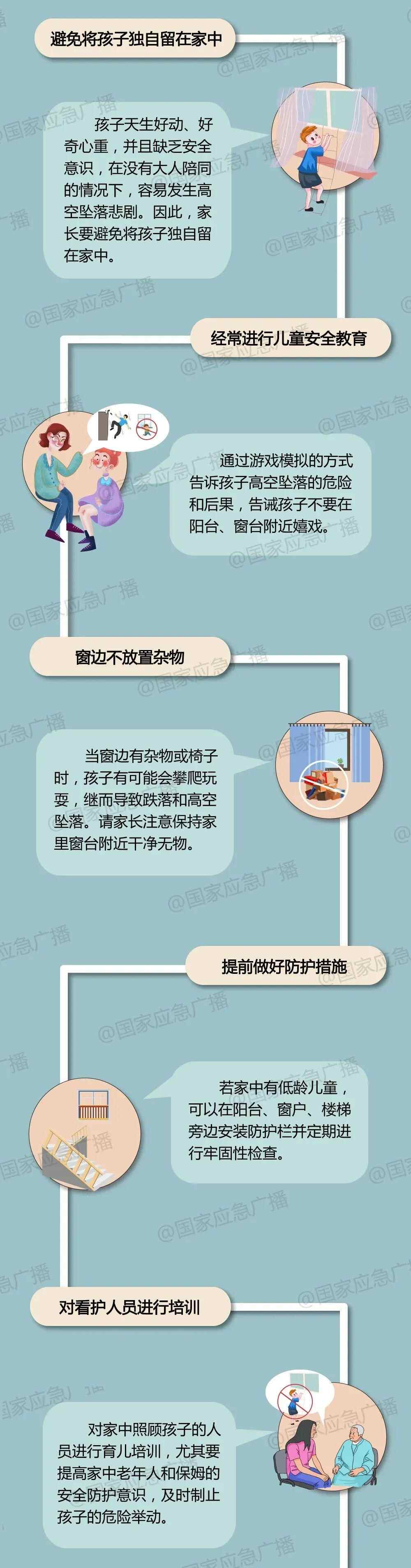 高层用户居室内常见的飘窗、平窗和落地窗,未安装防护设施的屋顶、阳台或楼梯,不安全的游戏场所等都有可能导致跌落。