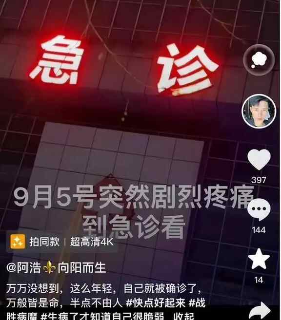阿浩发布的视频显示,2024年9月5日突然感觉剧烈疼痛,去医院急诊后,确诊肝肿瘤,到2025年1月份,已经是肝癌晚期,在上海的一家医院接受保守治疗。期间,阿浩因腹水导致背部和下肢水肿,肚子胀吃不下东西。他告诉网友:“不复发就没事,一旦复发意味着病情加重。”28岁的他称,女友还等他身体好起来娶她。