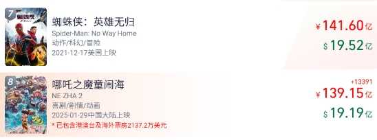 《哪吒2》票房突破139亿 冲击全球票房第7