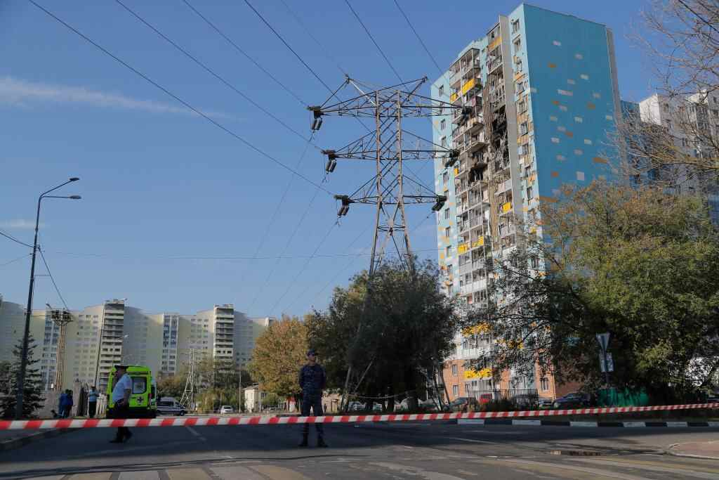 这是2024年9月10日在俄罗斯莫斯科州拉缅斯科耶拍摄的在无人机袭击中受损的建筑。新华社发(亚历山大摄)