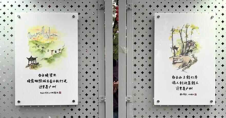 “白云晚望处,晚霞映照城市奋斗的灯光,这里是广州”“白云山上能仁寺,游人到此是能人,这里是广州”“山庄旅舍的白云猪手,酸甜爽脆的岭南乡愁,这里是广州”……在创作过程中,小林老师走进白云山采风写生,以山林野趣为背景,勾勒白云晚望、山庄旅舍、能仁寺、桃花涧等云山景点,以及白云猪手等特色美食,书写独具特色的话语,让市民游客通过漫画与现实景观生动对比,恍若置身在白云山徐徐展开的画卷之中,深切感受自然与艺术和谐共生的魅力。