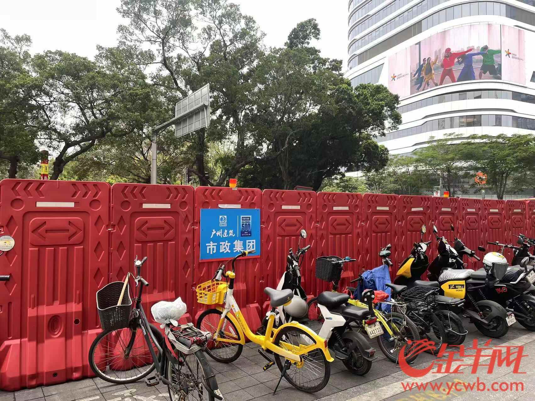 记者现场获悉,当天上午9时许,海珠广场部分路段便进行了围挡封闭,十余名施工人员有条不紊地对路段进行施工,被围挡的路段已近半数地砖被拆除堆放,直至下午,施工仍在继续。