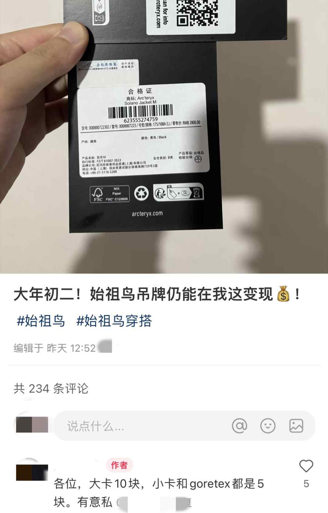 二手始祖鸟吊牌流向何方?