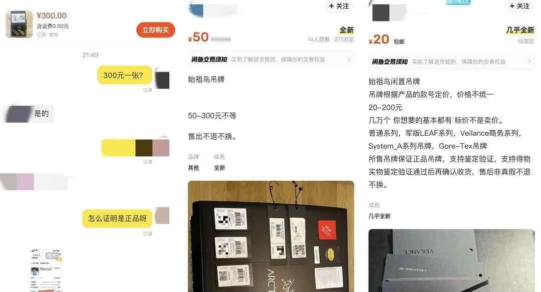 稀有始祖鸟吊牌被炒到一张300元。
