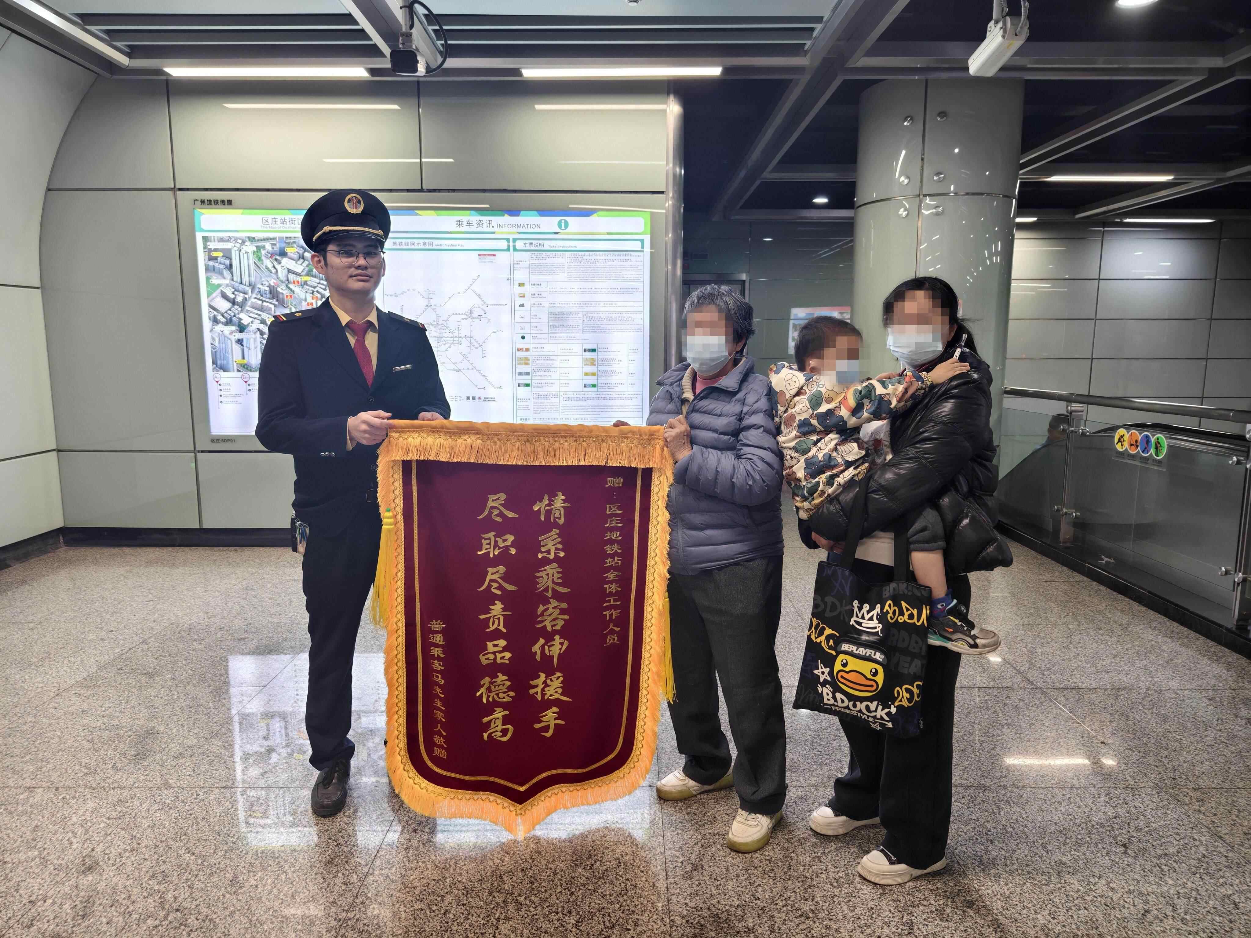 “你们的善举不仅救了我先生,更救了我们整个家庭!这份恩情,我们全家将永远铭记。”2月24日,乘客马先生的妻子特地带着女儿、孙子,携一面印着“尽职尽责品德高,情系乘客伸援手”字样的锦旗来到广州地铁区庄站,感谢工作人员一个多月前紧急救助在车上突发心脏病的先生。