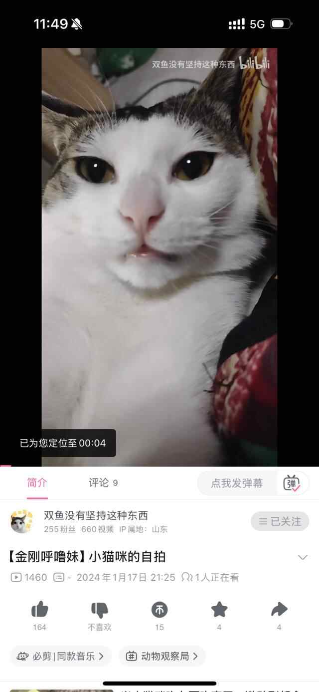 哔哩哔哩平台显示,此前被下线的视频发布于2024年1月17日,标题为“【金刚呼噜妹】小猫咪的自拍”。博主解释,这段视频内容为她在家中拍摄的猫咪,拍摄视频时,猫扶着她的手机,即“自拍”角度。视频总共22秒。记者看到,该视频内容均为猫,猫占据了大部分画面,有一部分房间背景露出。其提供的原始视频信息显示,该视频拍摄于发布前日,由于时间较久,其未保留剪辑过程的工程文件。