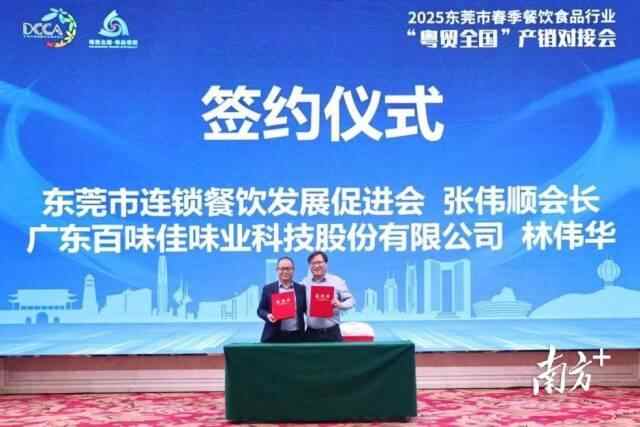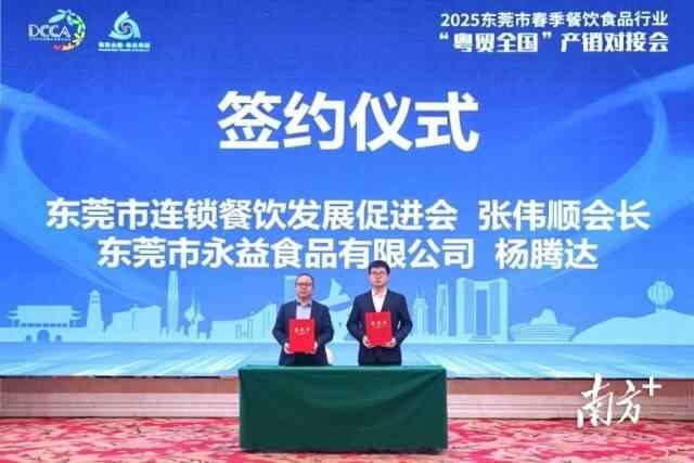 百味佳的鸡粉、永益食品的番茄沙司、京东的冷链服务……2月26日,2025东莞市春季餐饮食品行业“粤贸全国”产销对接会在“国际制造名城”东莞如期举行,吸引了上百家来自广州、深圳和东莞的餐饮食品企业参与对接,其中不乏行业龙头和知名连锁餐饮品牌。