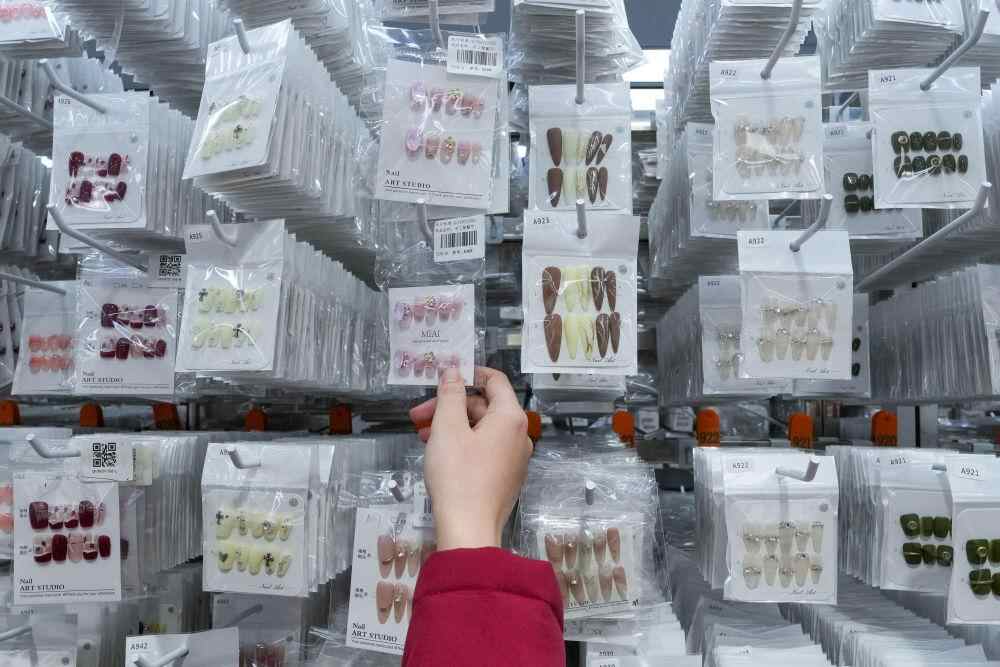 李轩是牛山街道最早嗅到商机的人。2018年,出于环保安全考虑,他将目光投向可反复佩戴和摘取的穿戴甲。“我第一次接触穿戴甲的时候,一副价格要300元,比普通美甲贵得多,但相较于过去在指甲上涂抹色胶,它只需要果冻胶,几分钟就可完成,既安全又方便。”