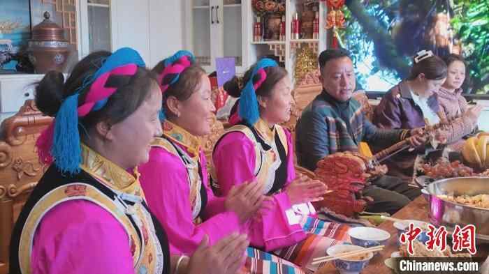 为迎接藏历新年,巴塘县南戈水电移民新村吉称家民宿一大早便宾朋满座。酥油茶香与“团结包子”等美食热气氤氲,厨房里油锅翻腾,花茹绽开朵朵“红莲”。“正月里来过新年,巴塘老少着新衫,花灯佳节人人欢。”老翁与稚子随《十二月令曲》踏歌而起,舞袖翻飞宛若流动的“高原画卷”。藏族阿妈曲珍白发随舞步颤动:“跳一整天都不累,这才是年的味道!”