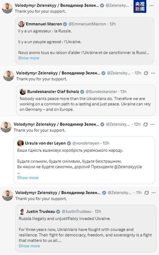 泽连斯基离开白宫后,在社交媒体上说了37个“感谢”,目前仍在继续。