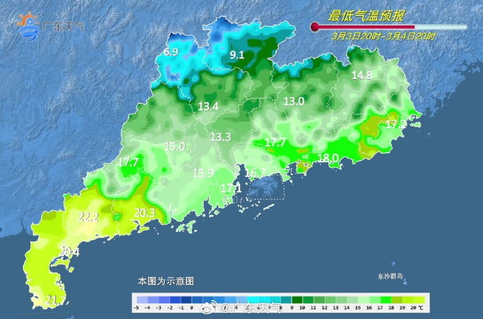 @广东天气 预计,受偏南暖湿气流影响,2日,广东陆地和海面多云为主,早晨有(轻)雾,气温还将有所回升;3日-4日强冷空气自北向南影响广东,其中,冷空气前锋下午到达粤北,半夜到达广州市区,4日上午到达南部沿海。