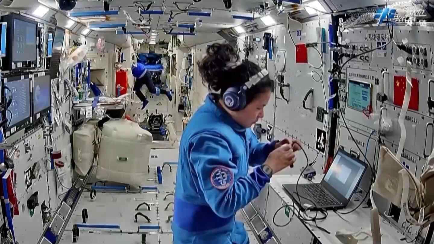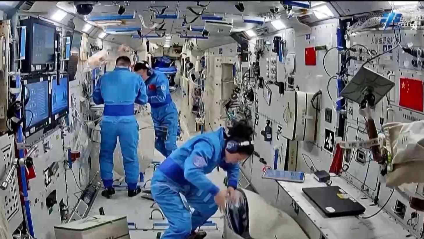 此外,乘组开展了空间材料科学、微重力燃烧科学等领域实验相关工作,完成无容器柜实验样品更换、轴心机构电极维护等多项操作。