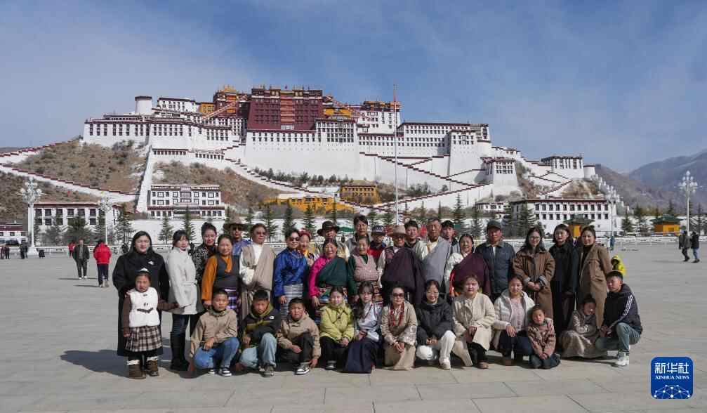 2月28日,来自西藏那曲市比如县的一家人在拉萨布达拉宫前合影留念。新华社记者 晋美多吉 摄
