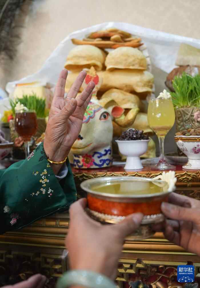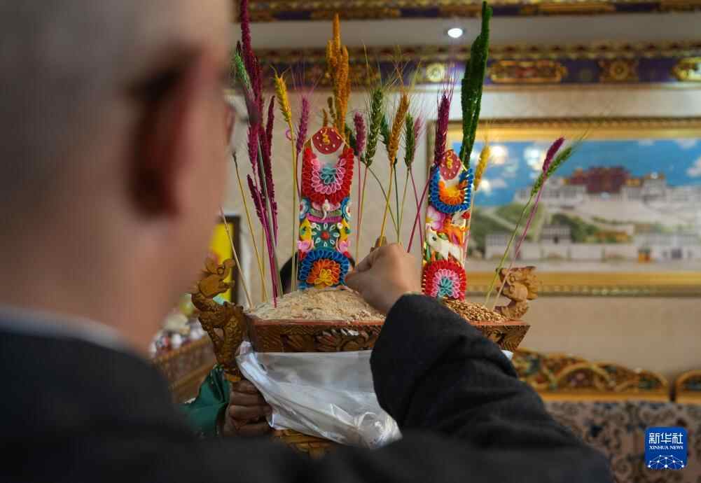 2月28日,身着藏装的拉萨市民在敬献青稞酒。新华社记者 晋美多吉 摄