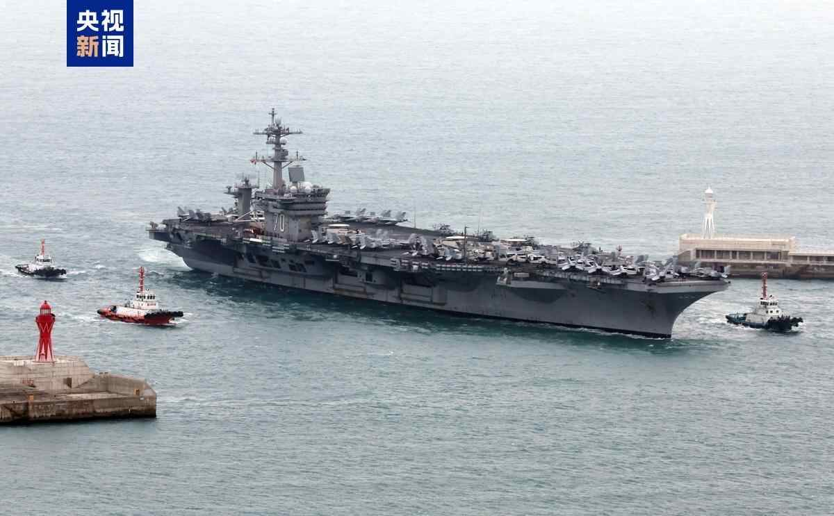 美国“卡尔·文森”号航母驶入韩国釜山海军基地