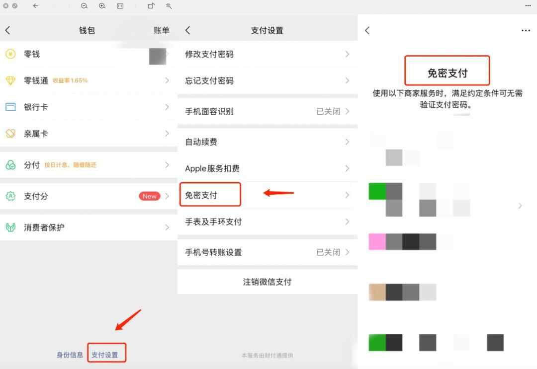 微信:点击“我”→进入“服务”→点击“钱包”→找到底部的“支付设置”→选择“免密支付”,关闭相应的免密授权应用。
