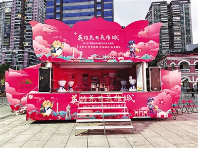 3月1日,由中共广州市委宣传部牵头,联动全市各区各单位开展的“英雄花开英雄城”传承弘扬红色文化系列活动启动,融合舞台展演、展厅展览、互动体验等功能于一身的流动展馆“英雄花开英雄城”2025广州传承弘扬红色文化大篷车也同步出发,并将于3月7日在沙面举办首个大篷车专场活动。据悉,大篷车巡展将融合红色故事、音乐、AI科技、文创等多元形式,把英雄精神送到市民身边。