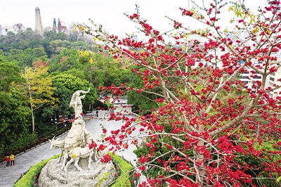 红棉盛放,英雄花开。广州的街头巷尾,一朵朵嫣红的木棉花缀满枝头,奏响英雄的赞歌。木棉是广州市市花,被誉为“英雄花”。作为中国民主革命的策源地和中国改革开放的排头兵,广州这片红色热土上涌现出许多波澜壮阔的动人篇章。