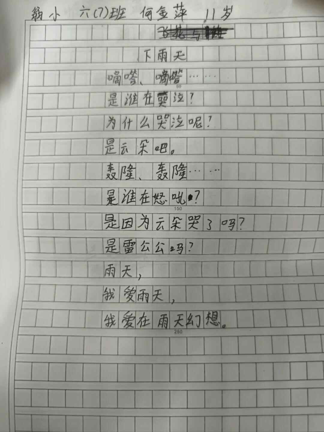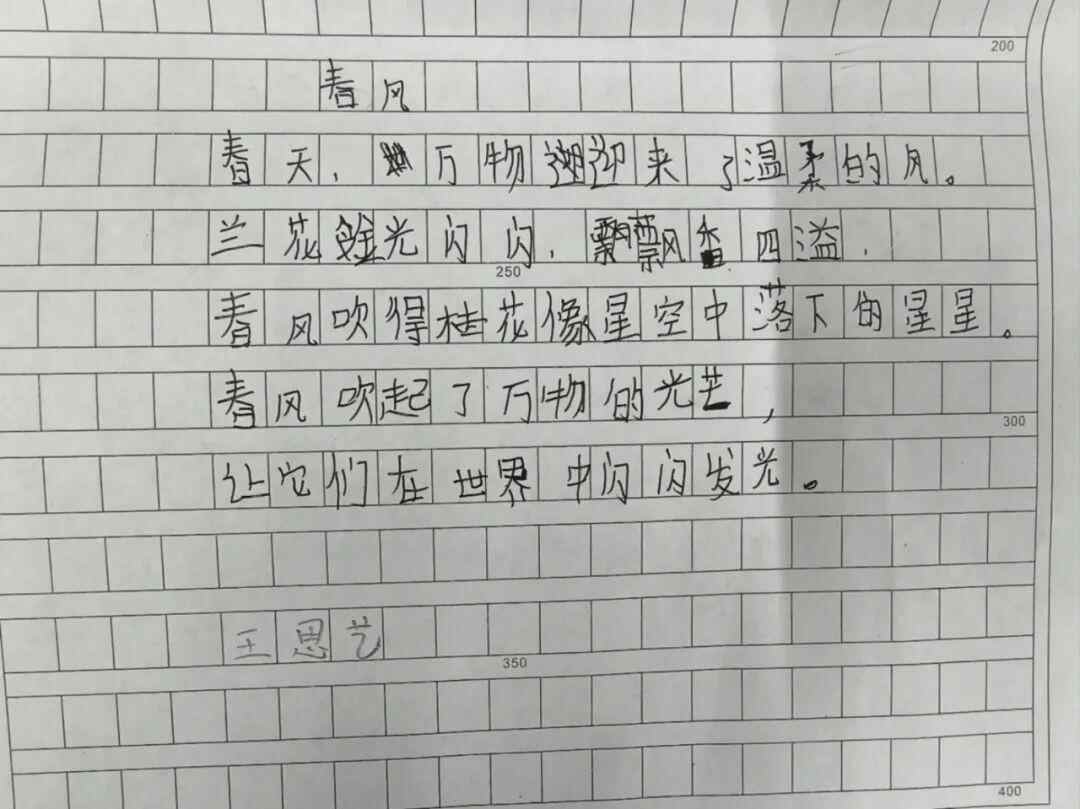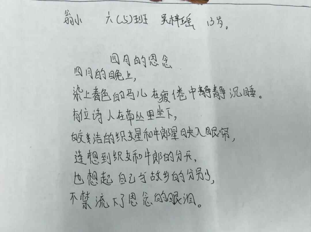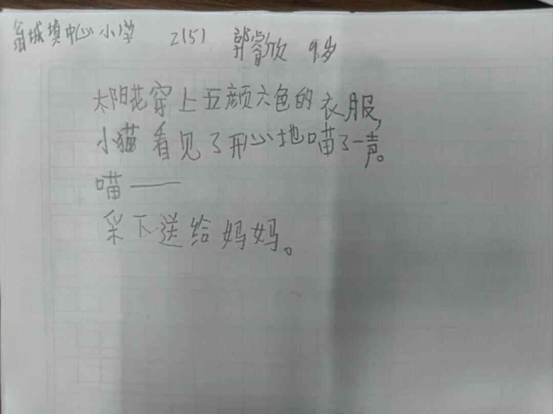 其中一位二年级的小朋友,她的句子和诗都特别可爱。她写道: