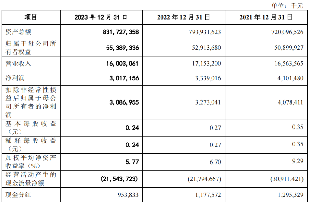澎湃新闻注意到,近年来,广州银行经营有所波动。据广州银行2024年6月更新的招股说明书(下称“招股书”),2022年、2023年,广州银行分别实现营业收入171.53亿元、160.03亿元,同比分别增长3.56%、下降6.7%;分别实现净利润33.39亿元、30.17亿元,同比分别下降18.59%、9.64%。
