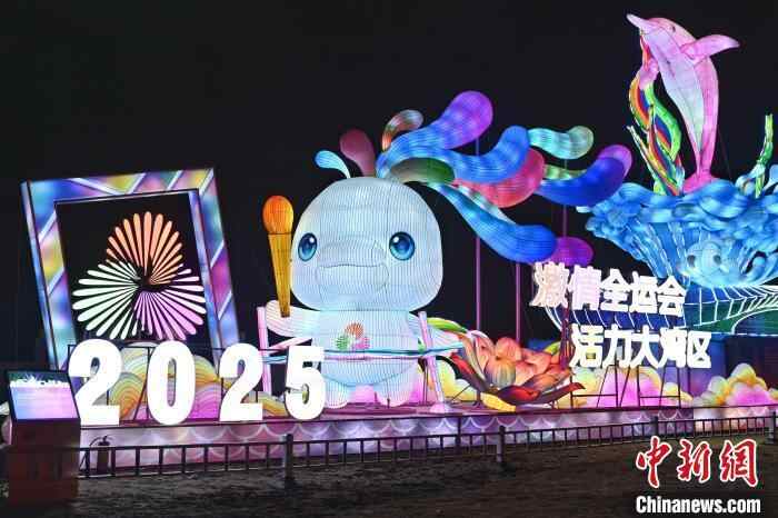 1月22日,广东广州,2025年粤港澳大湾区灯会正式亮灯迎客。图为灯会中的“魅力全运会”灯景。 中新社记者 陈骥旻 摄