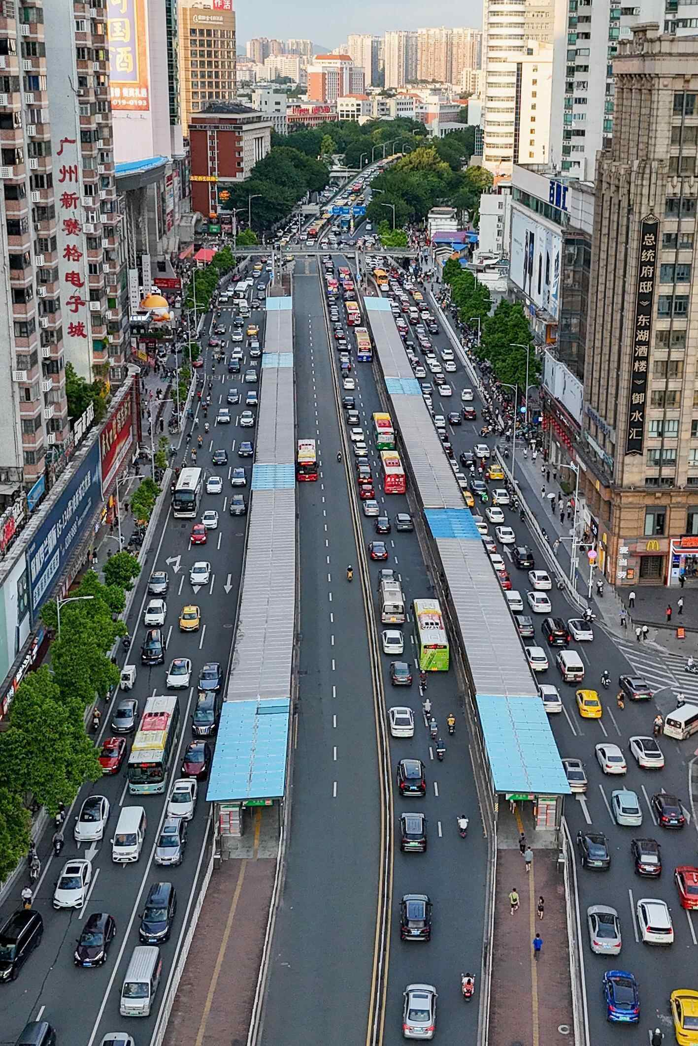广州,一个普通的工作日下午,天河路东往西方向的五条社会车道车流穿梭不息,由于体育东路的红灯限制,不时出现缓行现象;这些车道的左侧,BRT专用道上,数分钟内仅有两三辆公交车经石牌桥站驶过。同在天河,一个周末的午间,从华景新城至体育中心站路段,社会车辆出行需求增加,出现普通车道排长龙、一旁BRT专用道空荡荡的“冰火两重天”景象。
